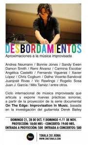 Co-curated with Fernando Vigueras: Desbordamientos features improvisors from around the world accompanied by a viewing of Derek Bailey’s seminal four-hour documentary “On The Edge: Improvisation In Music”.
